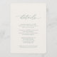 This elegant wedding details card features a refined minimalist design with soft sage green typography on a warm ivory background. Clean layout and graceful script headings create a timeless look that pairs beautifully with modern, classic, and garden-style weddings.
