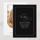 This striking minimalist black and white wedding invitation features a bold black background with elegant white script and refined serif typography. A thin border adds a timeless touch, while a QR code on the back allows guests to easily access the couple’s wedding website for additional details. Perfect for modern, classic, or formal weddings, this sleek and sophisticated design is effortlessly chic. Easily personalize with your wedding details and photo for a refined and stylish announcement.