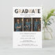 This graduation invitation features a modern industrial black and white design, where visual strength is built through a clean and structured composition. The textured stencil typography adds character and presence, becoming the focal point of the design. The three-photo linear layout organizes the graduate’s memories in a clear and progressive way, creating a cohesive and balanced visual narrative. The absence of unnecessary decorative elements reinforces the minimalist aesthetic, resulting in an elegant, refined and high-impact visual outcome.