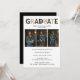 Modern Minimalist Industrial Black & White Graduation Invitation with a Textured Stencil Typography 3-Photo Linear Layout.