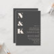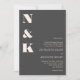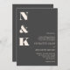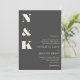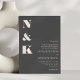 This modern wedding invitation features a bold monogram design with clean serif typography on a rich charcoal gray background for a sophisticated, understated look. The oversized initials create a striking visual statement while the streamlined layout keeps wedding details clear and easy to read. Ideal for modern, formal, and evening weddings, it works especially well for couples drawn to minimalist design with a refined edge. A timeless choice for invitations that feel confident, elegant, and thoughtfully composed.