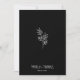 Romantic, elegant and simple design with branches and leaves in white to use as a minimalist weding invitation on a black background.