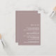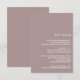 Cartão de detalhes para convidados de casamento minimalista em poeira de ameixa e branco com fontes sans serif modernas e finas.