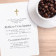 Composto por tipografia serifônica; Tudo contra um pano de fundo branco. Uma simples cruz de ouro falsa decora sutilmente a tipografia. Este é um convite batismal clássico, simples e limpo. Este foi projetado por materiais de terceiros selecionados, exclusivos para o Zazzle. Disponível aqui: http://www.zazzle.com/selectpartysupplies