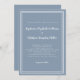 O Convite Elegante e Trendy Wedding apresenta um simples design minimalista contemporâneo com uma dupla borda de quadros em branco nítido sobre fundo azul empoeirado. A formulação tradicional proporciona sofisticação eterno mas moderna. Personalize o design de casamento com seus detalhes em letras brancas e roteiro nítidos. A parte traseira da placa corresponde a azul estável.