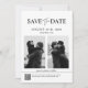 Este editável salvamento da data modelo é um moderno anúncio de casamento de fotos em preto e branco com tipografia minimalista, perfeito para casais que procuram um na moda e fácil de personalizar design.