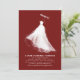 Os convites de chá de panela espelham lindamente as emoções sentidas da noiva e a essência romântica do seu próximo casamento. O estilo é elegante e minimalista, exibindo uma delicada silhueta da noiva em um belo vestido branco. Essa imagem estabelece um humor sonhador, romântico, repleto de nuances poéticas e nostálgicas. As pinceladas texturizadas da ilustração fazem uma transição suave para um rico pano de fundo vermelho de burgundy, que acentua ainda mais o charme de design. Essa abordagem simples, mas impactante, captura brilhantemente a beleza e a sofisticação da noiva e seu dia especial, garantindo que os convites façam uma impressão memorável e duradoura.