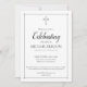 This minimalist invitation with Latin Cross features a clean border and refined typography, offering a peaceful and modern way to share service details. Designed for those who seek dignity in simplicity, this template is easy to customize for a funeral, memorial, or celebration of life.