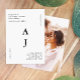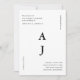 Este moderno convite de casamento preto e branco minimalista apresenta um grande monograma central, enquadrado com detalhes de casamento tipografia e uma foto de cheio de volta.
