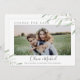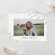 Design de folhagem botânica de cor aquática moderna com foto de casais, simples e elegante, informe aos seus convidados de casamento a informação atualizada com esta foto, mudando a data cartão de adiamento do casamento, excelente para casamento moderno, casamento rústico e casamento de jardim botânico em primavera e verão.