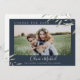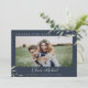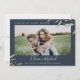 Design de folhagem botânica e aquática moderna, com foto de casal, com marinho de fundo azul editável, simples e elegante, informe aos seus convidados de casamento a informação atualizada com esta foto, mudando a data cartão de adiamento do casamento, excelente para casamento moderno, casamento rústico e casamento de jardim botânico em primavera e verão.