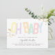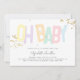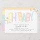 Mínimo Rainbow Gênero Neutro Oh Chá de fraldas Convite. Apresentando confete dourado falso e "Oh Baby" em cores arco-íris: amarelo pastel, roxo, laranja, azul, rosa e menta. Perfeito para comemorações de chás de fraldas neutras em termos de gênero!