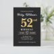 Convites Mínimo Dourado Negro Simples 52º Aniversário