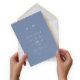 Estes elegantes e modernos convites para o casamento apresentam um simples design de texto azul e branco empoeirado que expele o estilo minimalista. Adicione suas iniciais ou monograma para torná-las completamente suas.