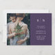 Estes elegantes e modernos convites para o casamento apresentam um simples design de texto roxo e branco que exude o estilo minimalista, com duas das suas fotos pessoais favoritas. Mais detalhes sobre o casamento ou site podem ir atrás. Adicione suas iniciais ou monograma para torná-las completamente suas.