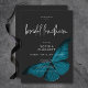 Este design de convite para o almoço de chá de casamento apresenta um tema escuro e modesto que é simples, mas atordoante. Um fundo negro de carvão negro é a canvas perfeita para uma mariposa azul-azul-lacrimejante solteiro, suas asas se espalham para o voo. Único e elegante, este design pode ser usado em qualquer estação. Criado pela imprensa simplesmente de farmácia.