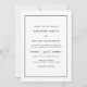Esses convites de casamento modernos e elegantes apresentam texto preto sobre fundo branco, com uma fronteira preta.