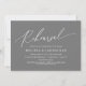 Script Elegante Mínimo Moderno, Cartão de Convite para Janto de Ensaio de Casamento em cinzas Escuras. Planejar uma celebração do Janto de ensaio do casamento com a futura noiva e futura noiva, antes do seu grande dia? Convide os convidados com este Cartão de Convite para Janto de Ensaio de Casamento. Adicione os detalhes do janto de ensaio em letra/letra correspondente. #TeeshaDerrick