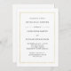 Estes convites de janto de ensaio modernos e elegantes apresentam um texto negro sobre fundo branco, com uma falsa borda dourada.