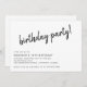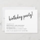 Convites de festas de aniversário casuais e bonitos com texto de título "festa de aniversário!" em uma fonte de script. Texto preto sobre fundo branco. Pode ser mudado para qualquer idade.