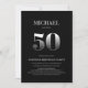 Convide seus amigos e entes queridos para uma surpresa celebração de 50 anos com este na moda minimalista convite de aniversário preto e prata.