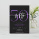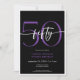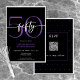 Moderno e chic, este convite de aniversário combina preto clássico e branco com sotaques de roxo brilhante. É um design mínimo é um design simples e divertido para celebrar o aniversário do marco. A parte traseira retém uma área para um código QR para resposta RSVP. Criado pela imprensa simplesmente de farmácia.