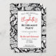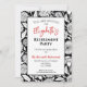 Um convite para a festa de aposentadoria negra, branca e vermelha. Este padrão floral minimalista é um convite marcante para o seu janto de aposentadoria.