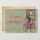 Convida com uma ilustração vintage de um minstrel medieval segurando uma luta e vestindo uma roupa colorida.