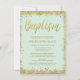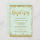 Convites Mint Dourado Faux Glitter Baptism Invances