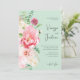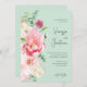 Este elegante convite de casamento floral cor-de-rosa e cor-de-rosa apresenta pénicas cor-de-rosa e cor-de-rosa, verde e outros elementos florais e a caligrafia de cinza escrita à mão num fundo verde-menta. Este convite é perfeito para o casal ter seu casamento em um local de casamento romântico, formal, elegante, moderno, chic, sofisticado, rústico, de moda ou ao ar livre.