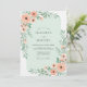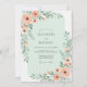 This design features a soft mint green backdrop complemented by delicate peach and apricot roses. Romantic watercolor greenery and sage leaves grace the layout, creating a fresh spring atmosphere. The ethereal botanical elements and soft color palette evoke a sense of graceful romance for a seasonal event.