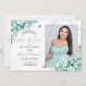 Mint Green & Silver Cartão com fotos Quinceañera Salve A Data Convite