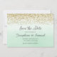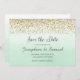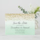 Salve o anúncio de data com design de brilho dourado falso e fundo verde de cor d'água da casa ombre.