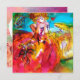 Caráter mascarada veneziano colorido, caprichoso e vibrante. Uma loura sofisticada e bonita está sentada com uma rosa vermelha e uma máscara de penas na mão com tecidos espumantes de ouro, de um figurino barroco mascarado, com penas e um cachorro. Pintura aquosa com cores brilhantes em cor azul-amarela rosa, verde, faíscas douradas e folha prateada, inspirada em personagens de Comédia de Arte ( Commedia dell' Arte ), Carnaval de Veneza e máscaras de penas venezianas.Este design legal e artístico é perfeito para casamentos, cerimônias nupciais, chás de panela, doce 16,festas de aniversário de quinceanera festas, bolas de dança em fantasia, noivados românticos, salvar os anúncios de data, festas de férias, reuniões familiares, coquetéis, celebrações de dia do ano novo, aniversários, reuniões, concertos, recital ou qualquer evento que você queira.