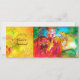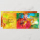 Personagem colorida, caprichosa e vibrante de máscara veneziana. Linda mulher loira sofisticada sentada com uma rosa vermelha e uma máscara de penas na mão com tecidos dourados cintilantes de cor fúcsia de um traje de baile de máscaras barroco com penas e um cachorro. Pintura em aquarela com cores brilhantes em azul amarelo, rosa, verde, brilho dourado e folha de prata, inspirada em personagens da Comédia da Arte (Commedia dell' Arte), Carnaval de Veneza e máscaras de penas venezianas. Este design legal e artístico é perfeito para casamentos, cerimônias nupciais, chás de noiva, festas de 16 anos, festas de aniversário de quinceanera, festas de Halloween, bailes de máscaras, bailes dançantes, propostas de casamento românticas, anúncios de "sal