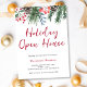 Mistletoe Merriment & Cheer Holiday Open House Invitation - Um elegante e festivo Convite de festas de Casa Aberta de Natal com amoras sagradas de água e verde de inverno em cores clássicas de vermelho e verde. Esta é a estação! Convide amigos e família para passar por aqui! Todo texto é editável. Disponível como um download digital instantâneo perfeito para o planejamento de festas de última hora e um alternativo ecológico.