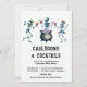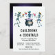 Um escritório corporativo ou de pequenas empresas divertido, engraçado, elegante e moderno convite para festa de Halloween com um tema de caldeirão e cocktails, com três esqueletos dançantes com cocktails à volta de um caldeirão de bruxas. Divertido e engraçado, elegante, moderno, simples e elegante, para a melhor festa de Halloween que seu escritório já viu.