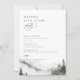 Cena de paisagem de pinheiros de coloração aquosa da montanha nebulosa, Felizmente Depois do Convite de festas. Tipografia a cores pretas com fundo branco colorido na frente e coordenando o apoio a cores pretas.