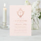 Este elegante convite de confirmação cor-de-rosa e rosa com ar de vintage, recomendado para uma rapariga, tem uma crista floral vintage com cruz, ambas em folha de ouro (faux) rosa. O nome da garota está escrito em um roteiro caligráfico elegante. O texto tem uma cor semelhante à crista dourada rosa. O plano de fundo é cor-de-rosa-claro. A crista floral vintage de uma antiga ligação ao cobrir, do livro "Rust, Smut Mildew & Mold", de 1870, agora no dominio público.