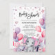 Convites Moça Elefante Rosa Balões Rosa Chá de fraldas Boni