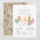 Convite ilustrado e bonito para a colheita de Páscoas e a caça aos ovos: com coelhos, ovos pintados e tulipas e flores de primavera desenhadas pelo dono da loja, Mònica Roca, de um lado. Do outro lado, uma adorável design Páscoa com coelhos e flores em mousse mocha e branco. Personalize todo o texto para ter o melhor convite para a sua Páscoa com caça aos ovos.
