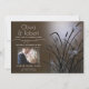 Noivado de Foto Rustic Nature - Sua foto com esse tema marrom-macio, um brilho suave por trás de uma bonito exibição de cattails e gramíneas com libélulas brilhantes brilhando - o dorso é uma cor coordenadora fácil de personalizar modelo - trabalho artístico original da WhimsicalArtwork™ para o BarefootBride ™. Isto é parte de uma suite de artigos de papelaria de casamento, assim como Chás de fraldas, Aniversário e Convites de Natal. Para perguntas ou assistência, entre em contato com o designer indy.designer@yahoo.com.