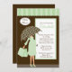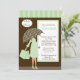 Comece o seu evento com o nosso convite para Chás de fraldas marrom moderno e moderno, com uma mãe modelo segurando um guarda-chuva e sacos de compras na frente de uma loja de bebês. Excelente convida para um chá de bebê ou chá de menina. Apenas personalize com suas informações e você está pronto para ir! Itens correspondentes, incluindo chás de fraldas postais, adesivos de favoritos, cartões de agradecimento e obrigado que você também está disponível em nosso compro. ©Babystar Designs