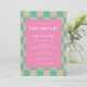 Mod Pink Mint Green Checkerboard Bat Mitzvah Convite com detalhes de RSVP