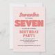 Celebre seu grande dia com o sétimo convite de aniversário desta garota! Apresentando uma tipografia rosa de "sete", um padrão floral fofo, e um simples modelo, este design é perfeito para uma celebração moderna e minimalista. O guião caprichoso da caligrafia acrescenta um toque lúgubre, enquanto as elegantes flores chic trazem uma vibração na moda. Personalize este convite divertido e encantador hoje para uma comemoração memorável de aniversário!