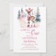 Cachorro de veados de inverno garotas editáveis convite para modelo instantâneo download digital instantâneo, veado-bebê agudo vestindo chapéu de inverno e cachecol por convite de aniversário de pinheiros de neve para uma garota temático de inverno