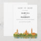 Este modelo de aviso de data para salvar IMPRESSÍVEL apresenta uma pintura aquarela da silhueta da cidade de St Augustine. Use este modelo para editar todas as palavras, fonte, cor da fonte e cor do fundo para combinar com o estilo do seu evento. Adicione sua própria foto ou gráficos facilmente a este modelo.