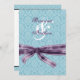 Este design com seu design de água úmida e seu arco sujo de satin roxo faz uma escolha elegante para seus convites de casamento. Todo texto é personalizável. Adicione seus nomes e detalhes do casamento! Você pode experimentar com diferentes tipos de papel para obter apenas a aparência que quiser.