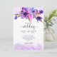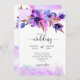 Modelo de convite para casamento de flores de aquarela azul púrpura com RSVP de QR no fundo (para preencher os detalhes de sua url no campo e o código será gerado).