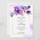 Modelo de convite para casamento de flores de aquarela azul púrpura com RSVP de QR no fundo (para preencher os detalhes de sua url no campo e o código será gerado).